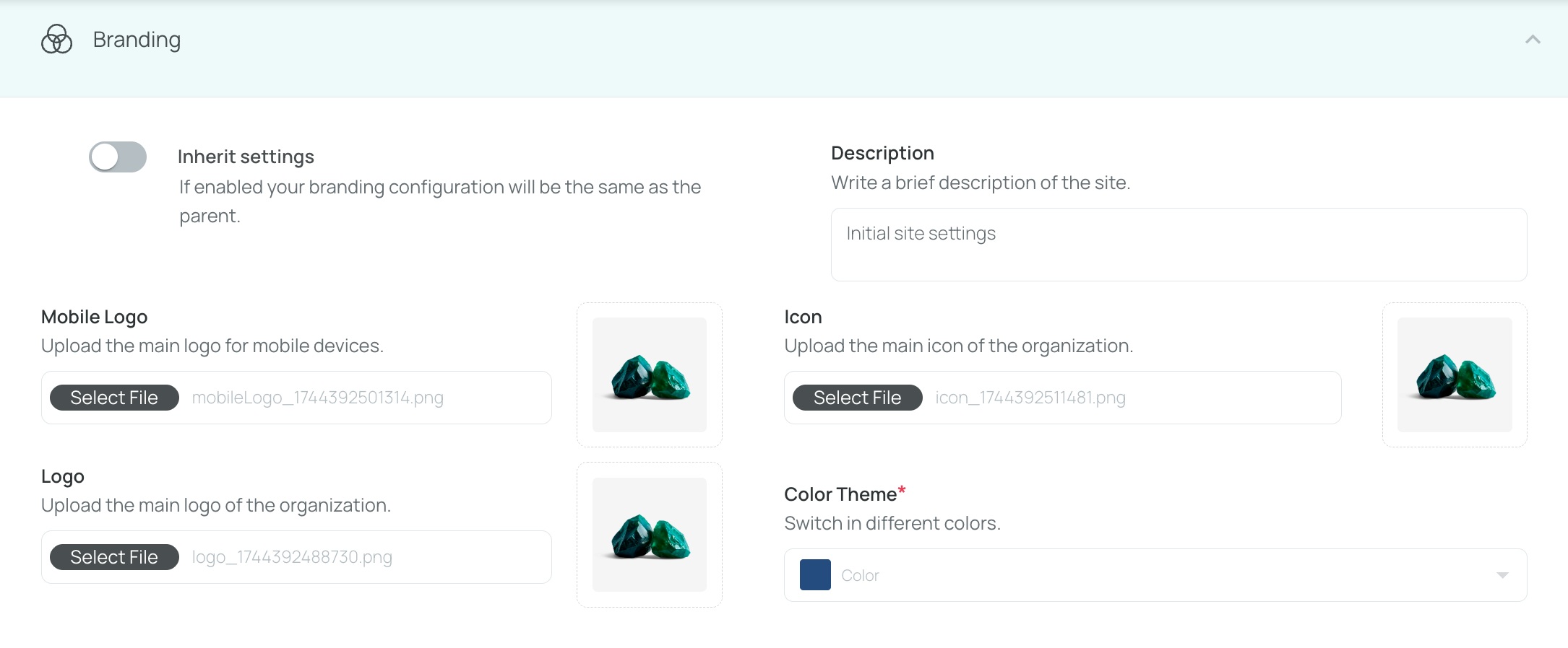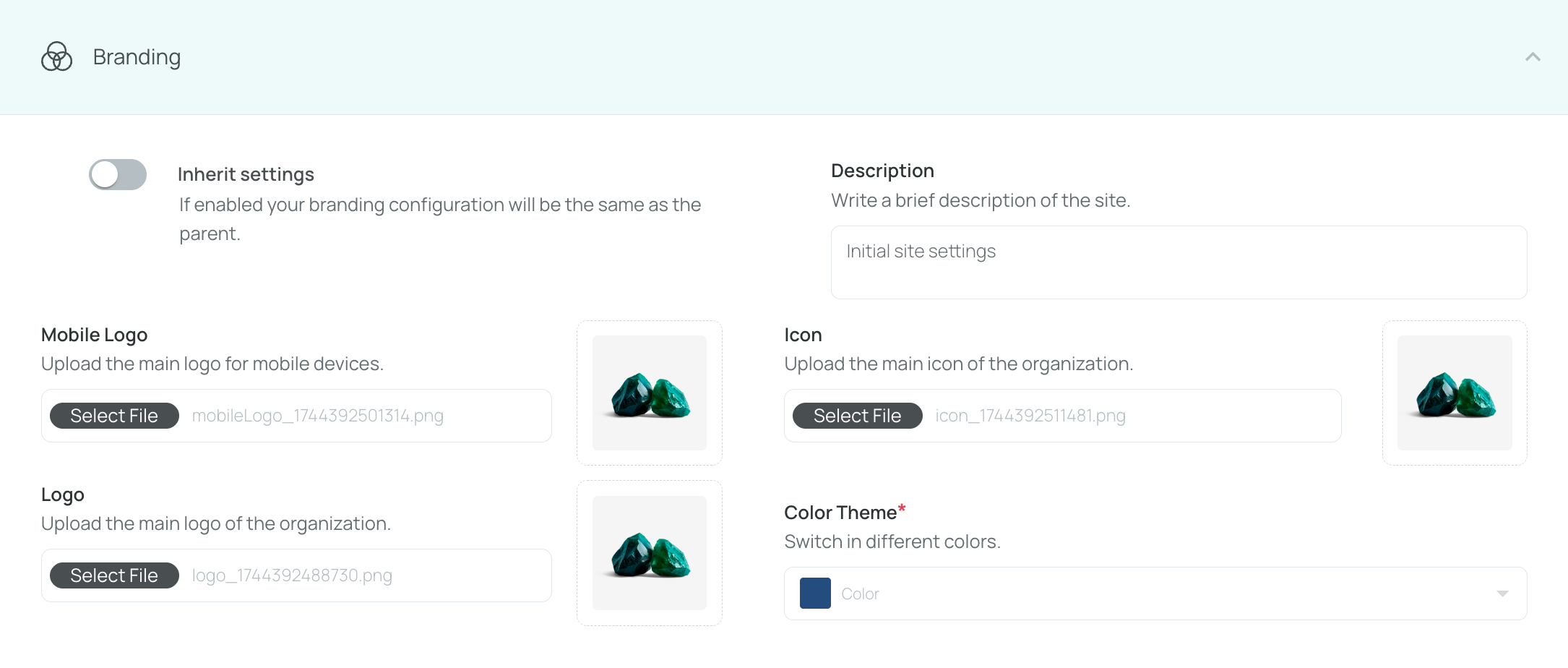 By default, each site inherits the main organization’s branding. You can turn that off and apply custom branding at the site level.