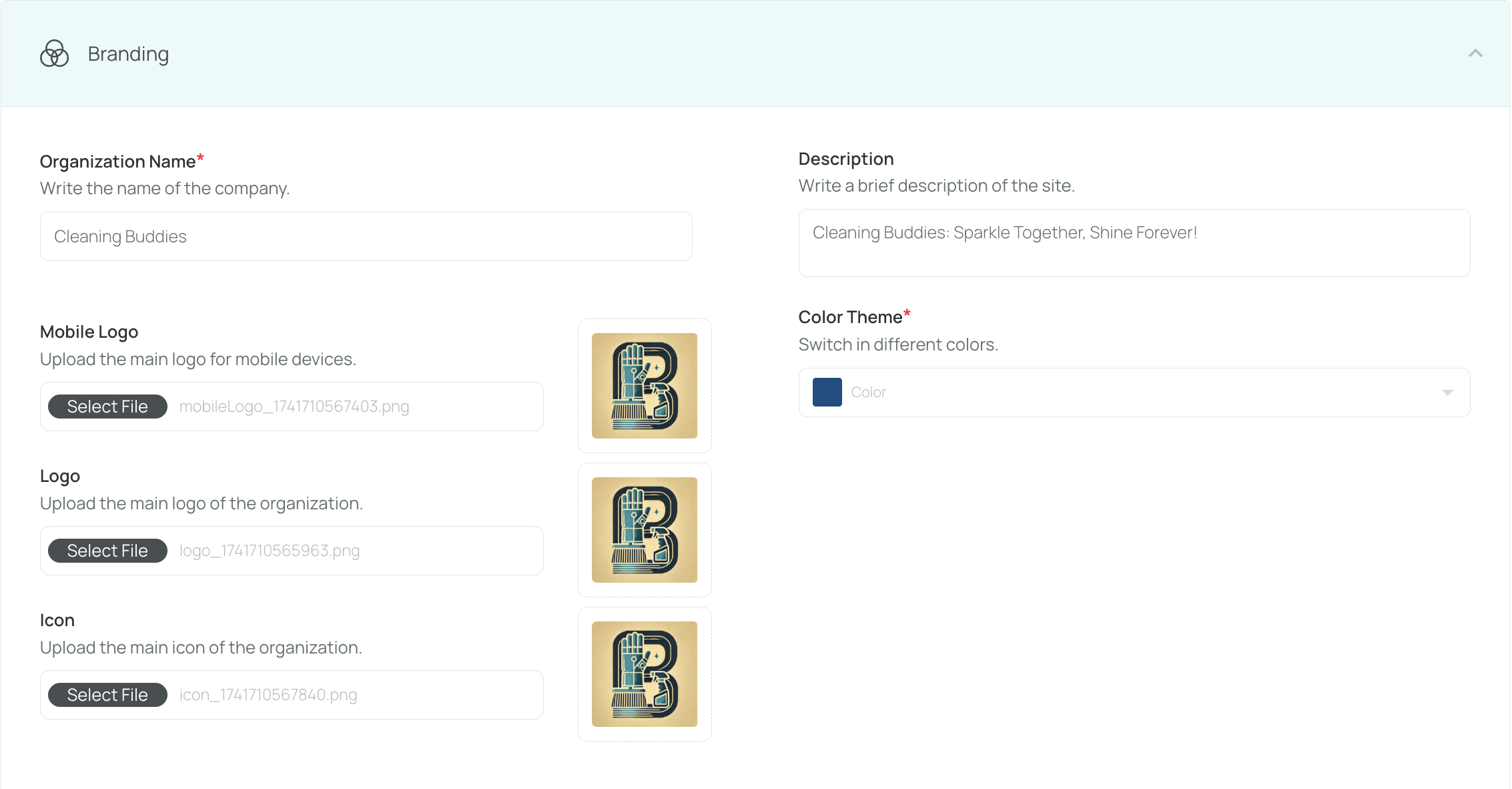 - Mobile Logo: Upload the logo used in the mobile app