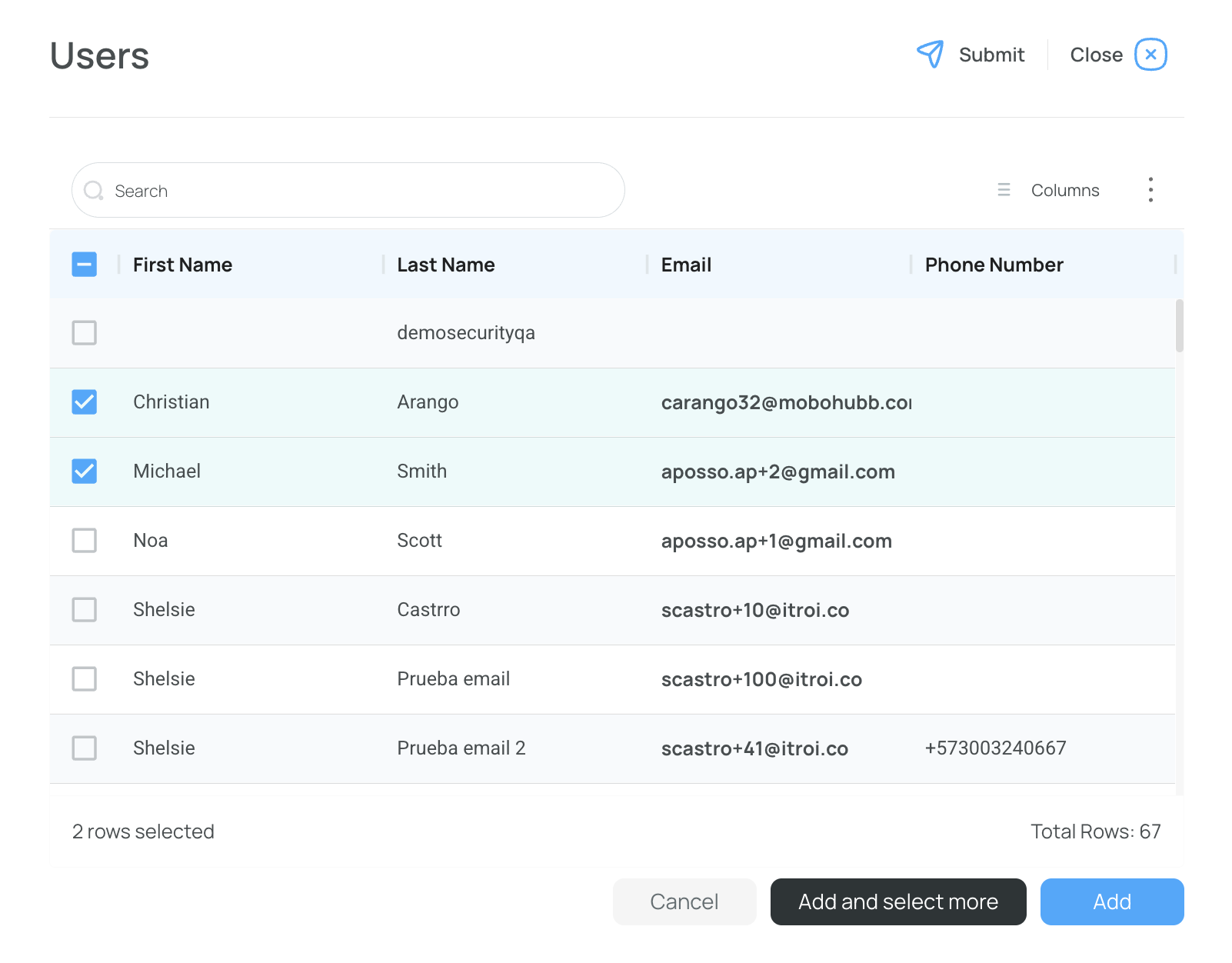 - You can select multiple forms/checklists at once, but they must have the same status (active or inactive).