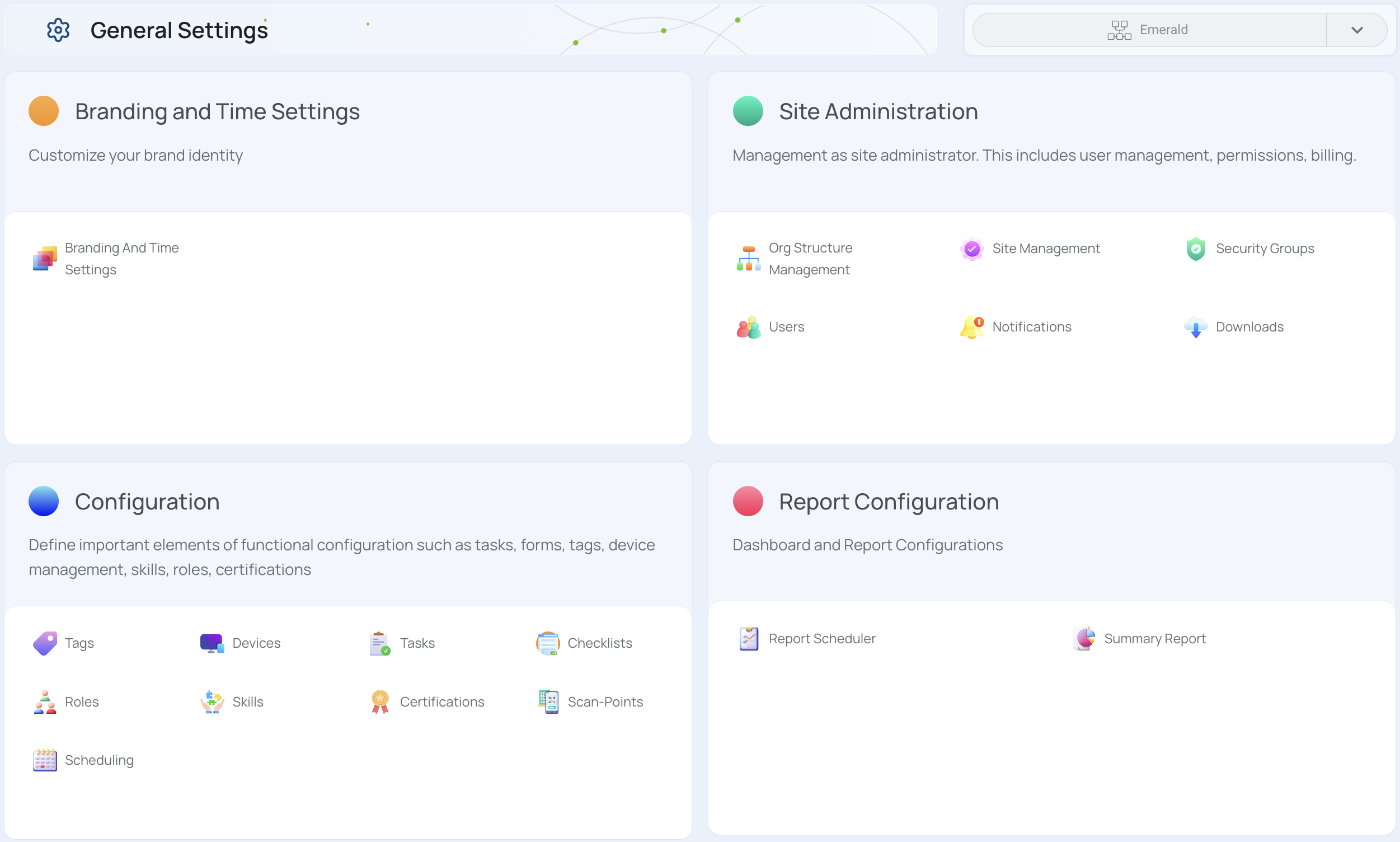 Gain an overview of the General Settings in mobohubb, where you’ll find tools to configure branding, site administration, report configuration, and more. This guide explains how to access General Settings and highlights related resources for in-depth instructions on specific categories.