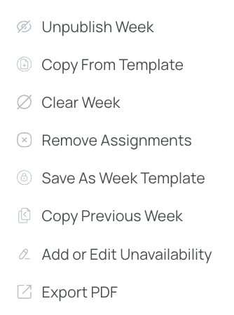 - Unpublish Week: Converts published shifts to drafts, hiding them from mobile users.