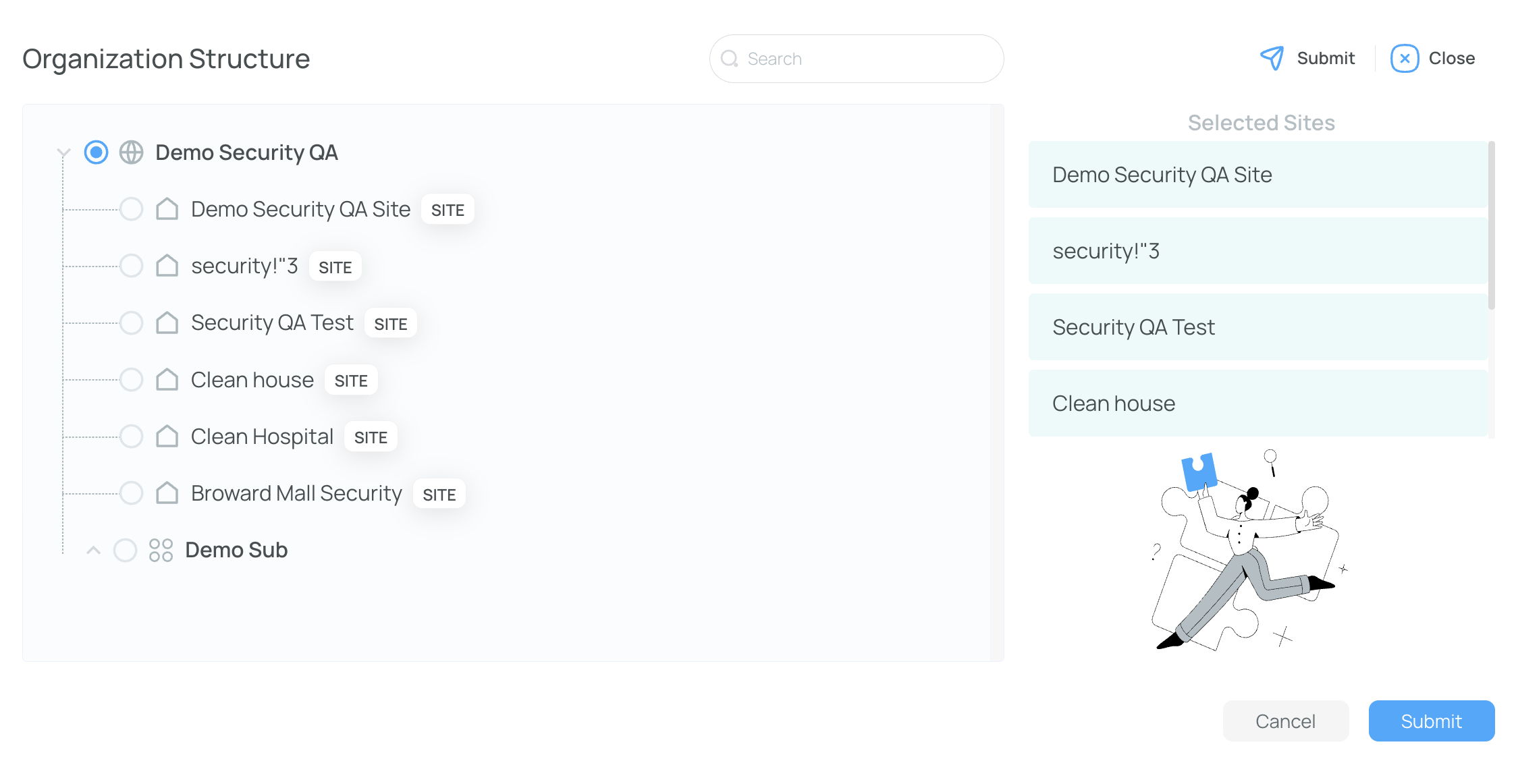 From the site selector, select the organization-level view.