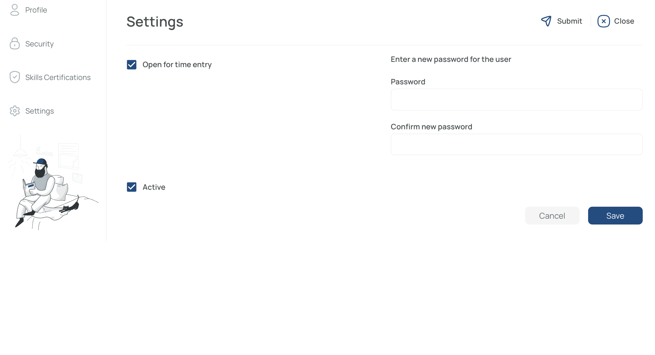 - Submit: Saves the changes and closes the Editing Card
